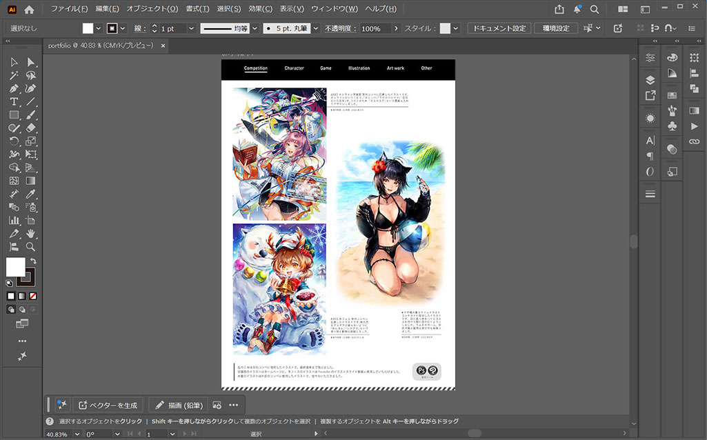 ※なお、ポートフォリオ制作はInDesign(インデザイン)を使うのが最も効率的です。