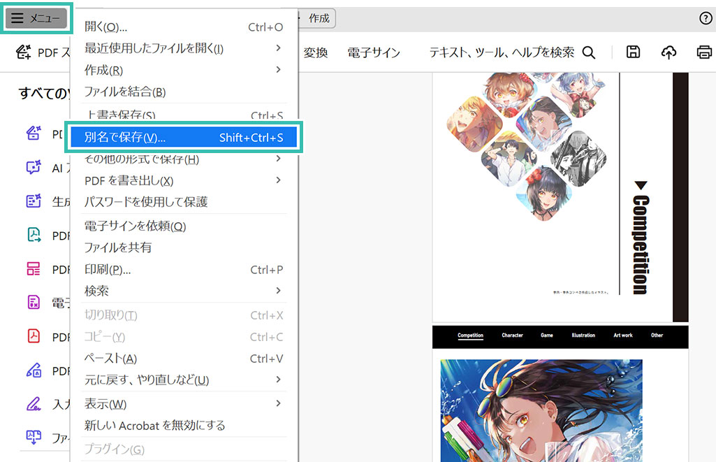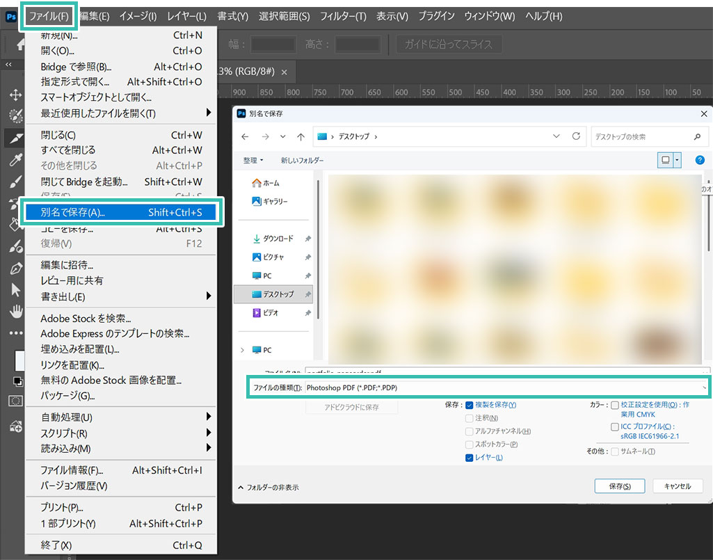 [ ファイル ] → [ 別名で保存 ] からでも可。