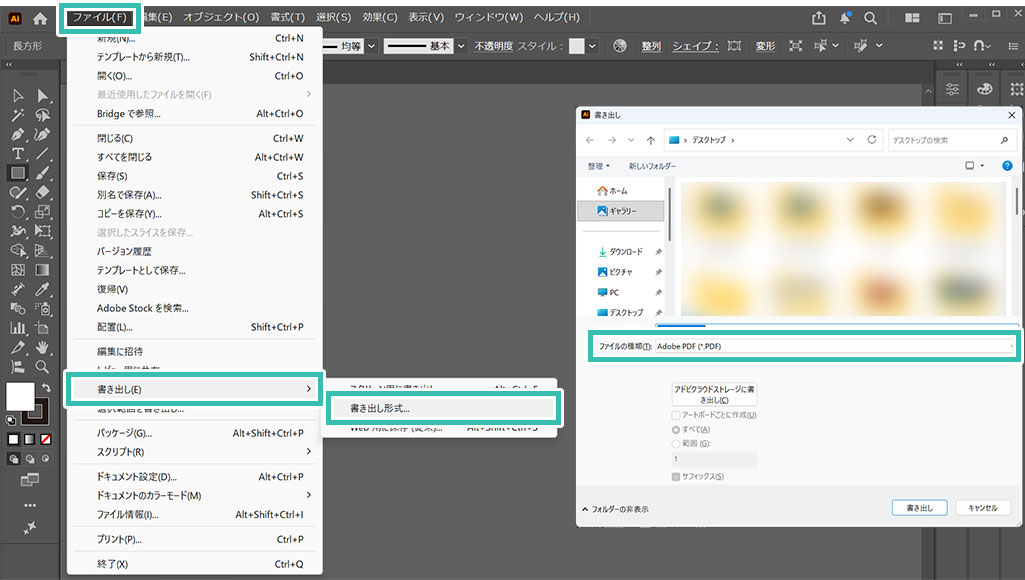 [ ファイル ] → [ 書き出し ] → [ 書き出し形式 ]