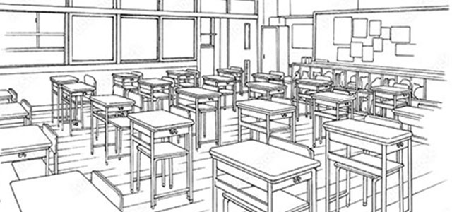 学校が舞台の線画背景素材