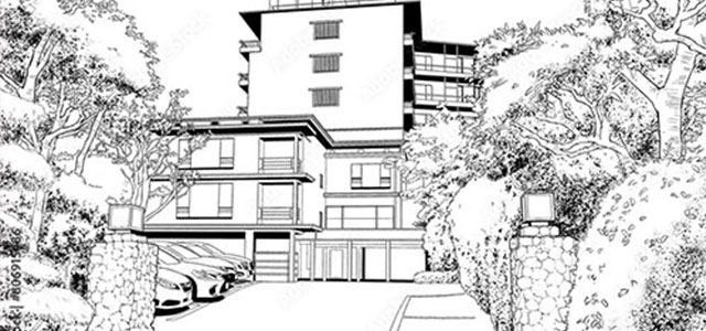 マンガの背景素材に最適な線画背景素材をまとめました。学校、西洋風、街中、リゾート施設、飲食店、和風など。汎用性の高いジャンルの背景素材を厳選しました。