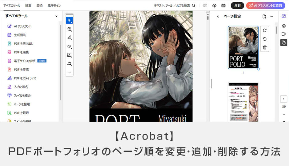 Adobe IllustratorやPhotoshop、InDesign等で作成したPDF形式のポートフォリオのページ順をAcrobat(アクロバット)でサクッと変更したりページを追加する方法を解説します。ポートフォリオを更新した際にページの並び順を変更する事は多々発生します。