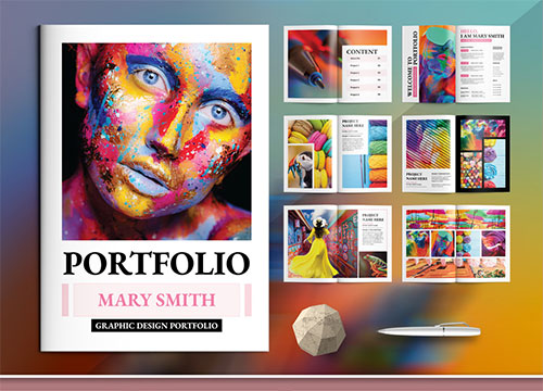 特に人物イラストや写真を掲載されたい方に適したテンプレートです。A4縦、CMYKカラー、20ページ収録なので初めて作るポートフォリオの目安にピッタリ。