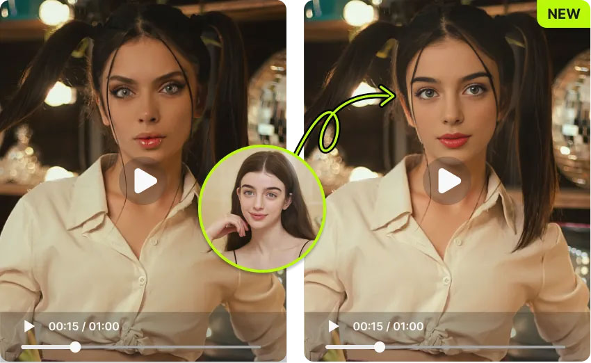 VidMageは静止画だけでなく、動画コンテンツの顔交換も可能!数クリックで全く別の顔にできるチート機能ですよ。