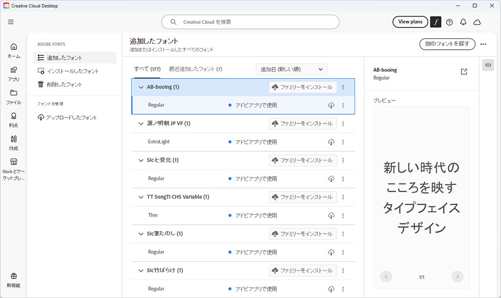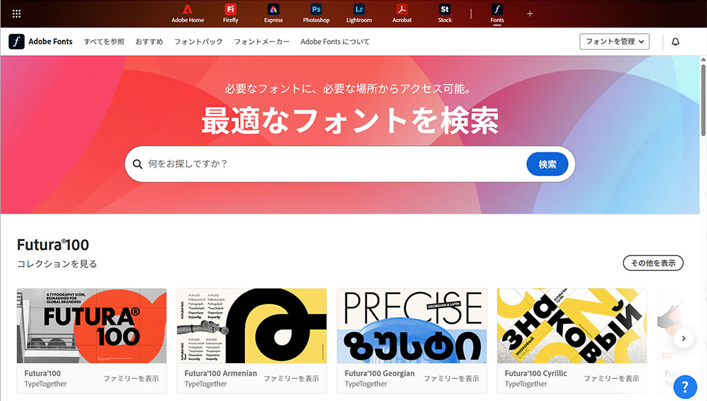 上記タブ内の [ すべてを参照 ] をクリックするとアドビフォントの検索ができます。