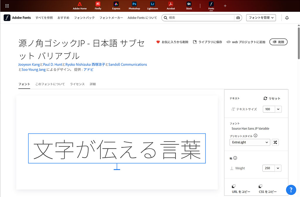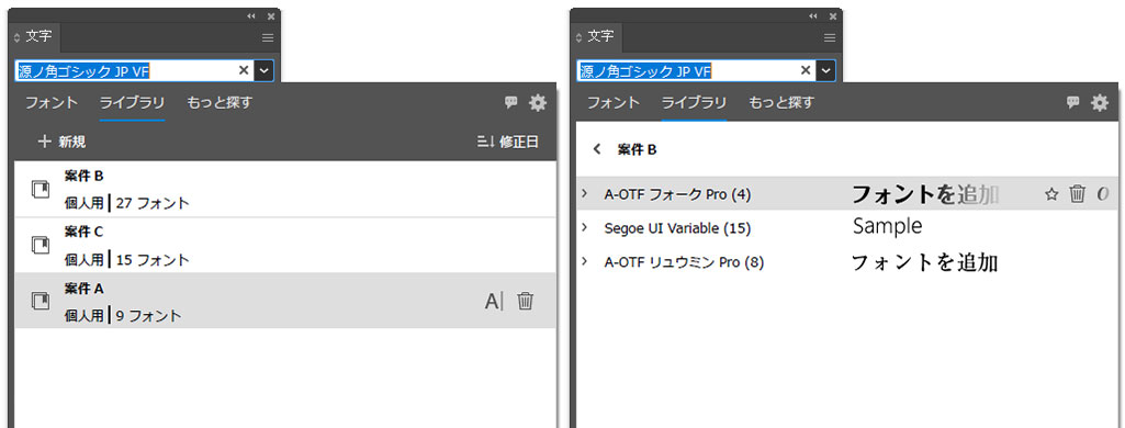 フォントライブラリを開くと各ライブラリにフォントが登録され、フォントの管理が簡単にできます。