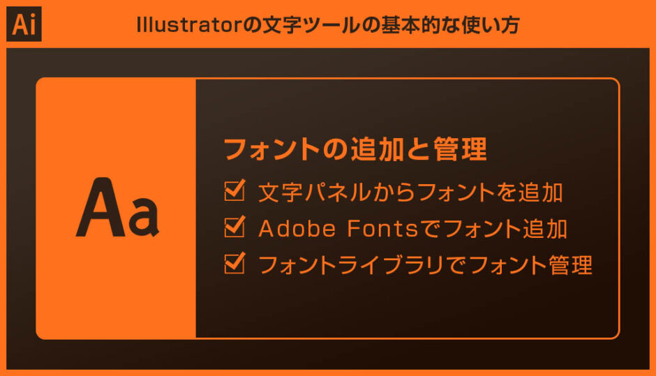 Adobe Illustrator(イラストレーター)でAdobe Fontsからフォントを追加する方法をイラレ初心者の方に解説します。フォントの追加・管理はイラレを使ったクリエイティブで必要不可欠!