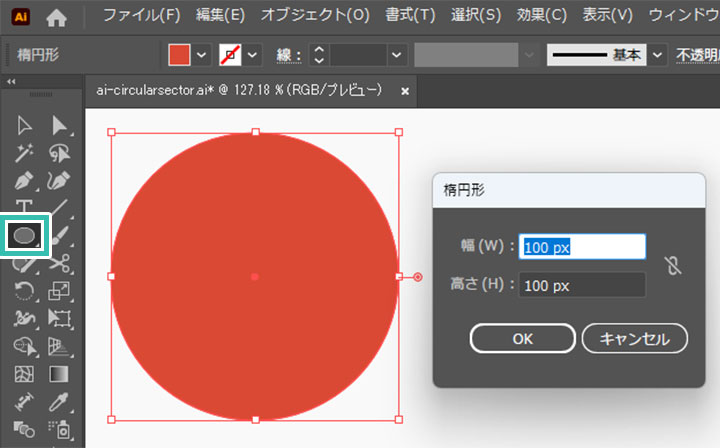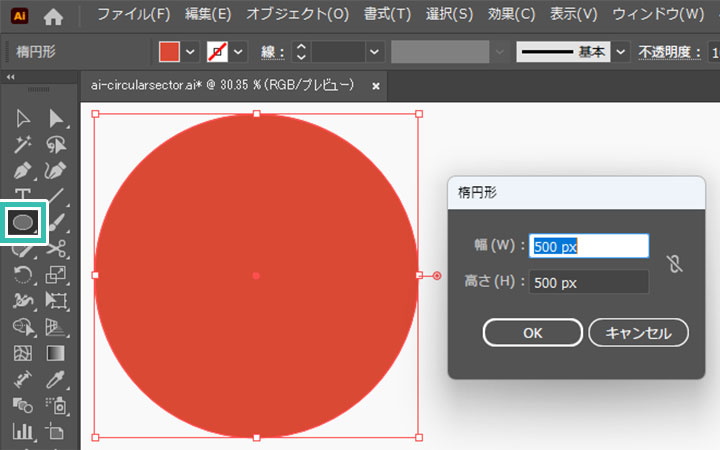 先の [ 楕円形のプロパティ ] とは別の方法で作成します。