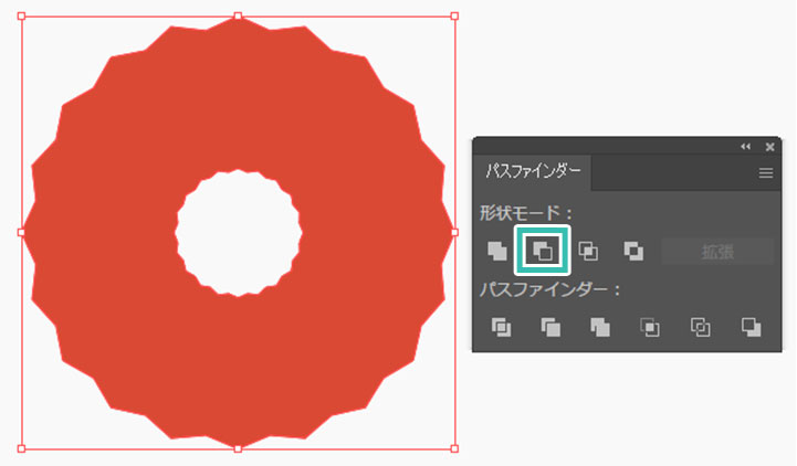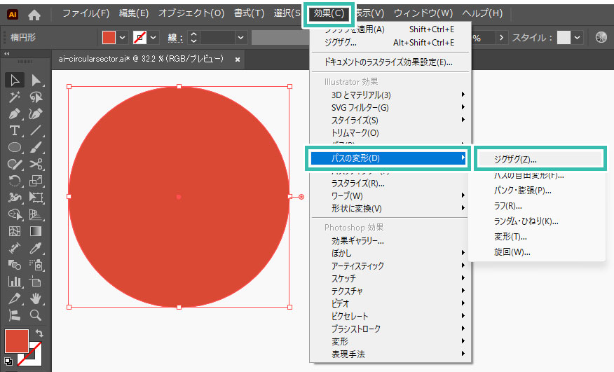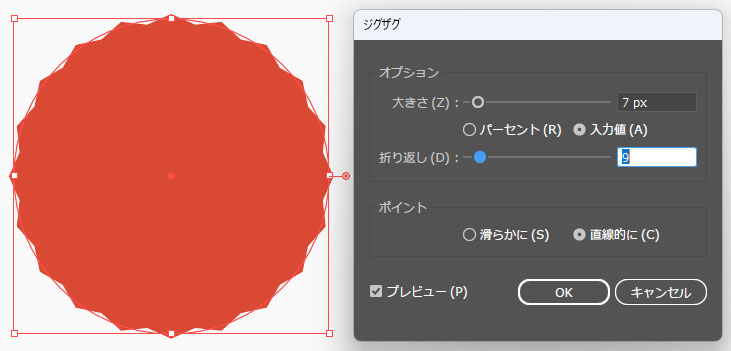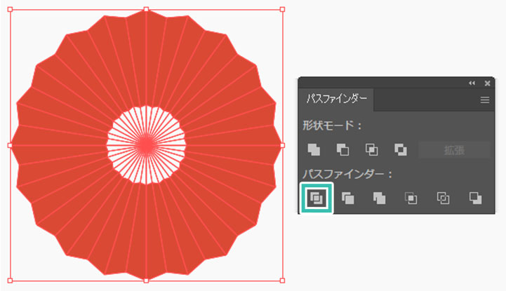 扇子のような周囲がギザギザした扇形のオブジェクトは [ ジグザグ ] 効果を使えば再現可能。あとは分割してオブジェクトの色を個別変更すれば扇子アイコンが作成できますよ。
