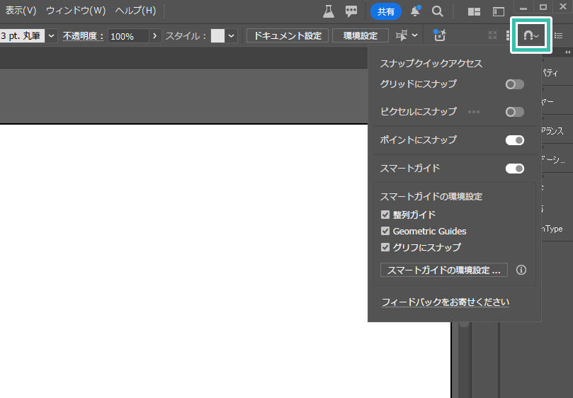 ※グリッドにスナップのショートカットは [ Shift + Ctrl + ¥ ] (Mac:Shift + ⌘ + ¥)
