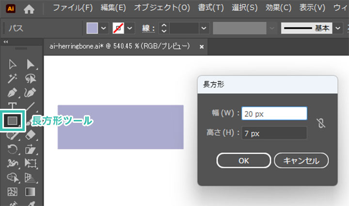 - [ 長方形ツール ] で20px x 7pxの長方形を作成