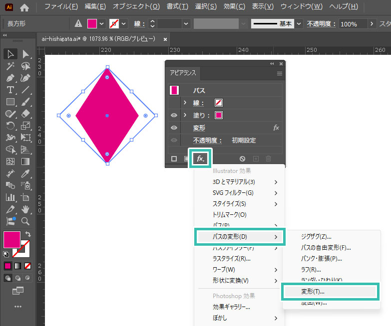 Illustratorでひし形オブジェクトを作る方法を解説します。