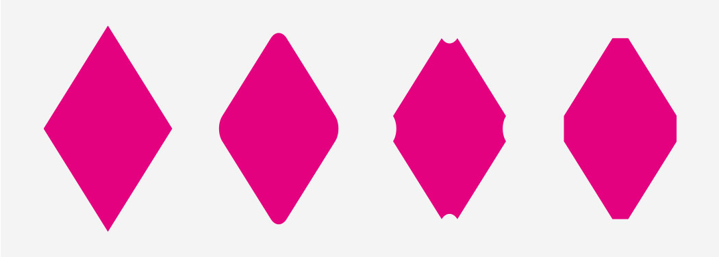 更に長方形のプロパティを残したまま菱形に出来るので角丸の菱形にできます。