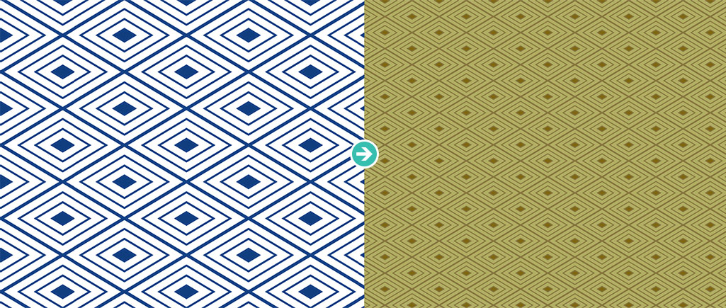 入子菱のパターンサイズを変更したい時は [ 拡大・縮小ツール ] で可能。パターンの色変更は [ オブジェクトの再配色 ] を使えば簡単にできます。好みの入子菱パターンにカスタマイズしたい方はお試しください!