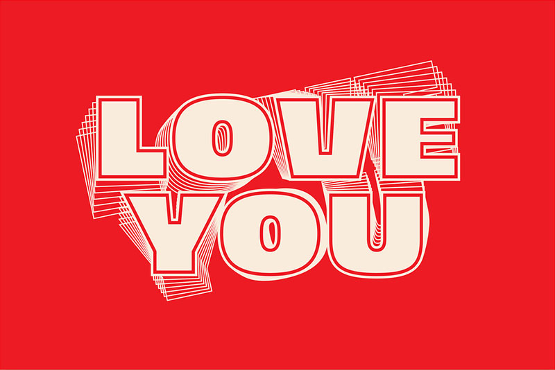 以上、Illustrator(イラストレーター)で文字をずらしたオフセットテキストエフェクトをゼロから作る方法でした。変形効果とグラデーションを使う事で1つの文字オブジェクトを複数重ねてずらしたような表現ができます。