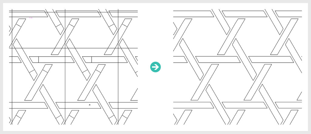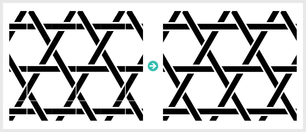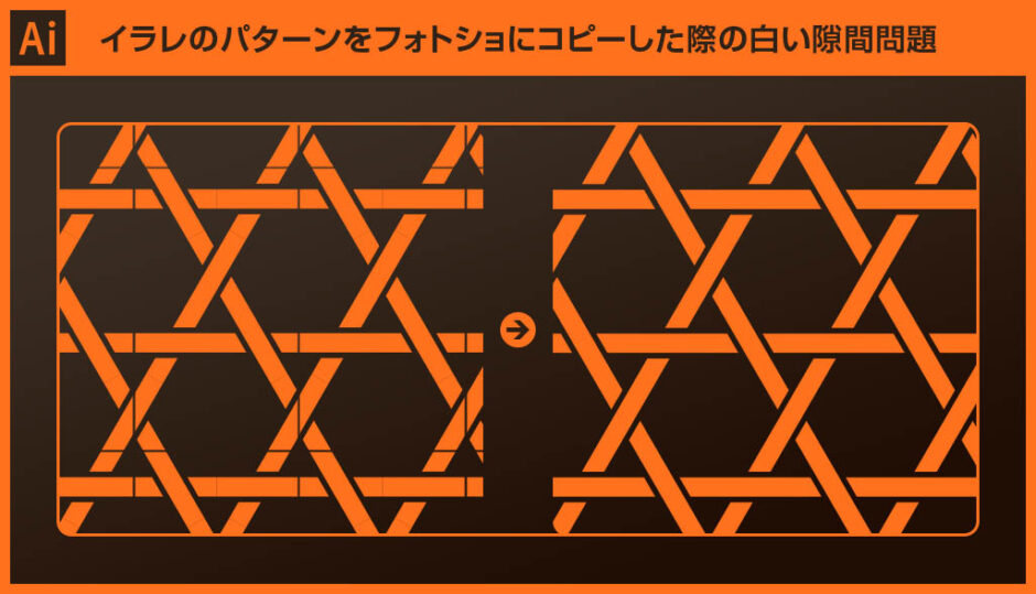 上記の様にIllustratorで作成したパターンオブジェクトを [ Ctrl + C ] でコピーし、Photoshop上で [ Ctrl + V ] でペーストすると左図のように「白い隙間」が発生します。地味に面倒なこの隙間を右図の様にサクッと解決できますよ。