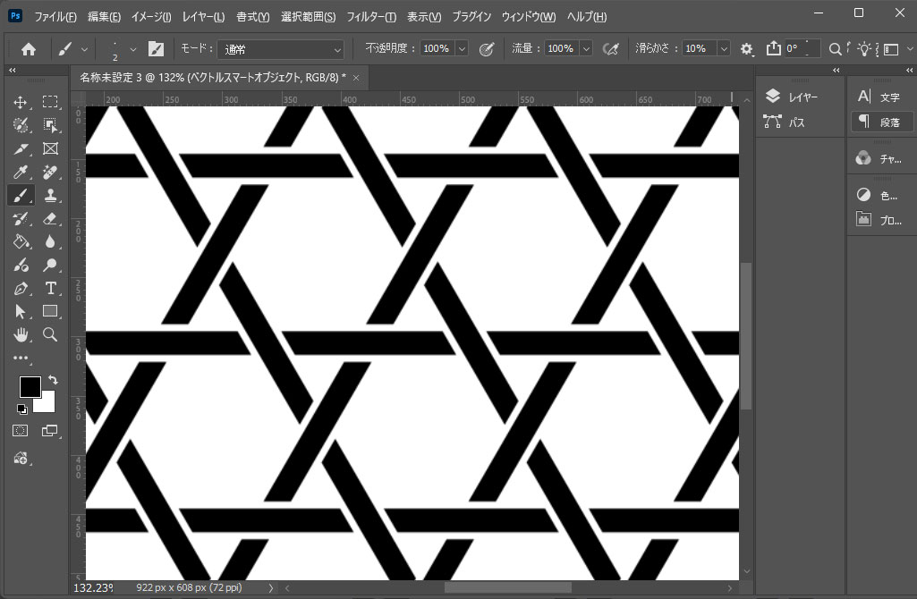 以上、Illustrator(イラストレーター)で作成したパターンをPhotoshop(フォトショップ)にペーストした際に発生する白い隙間を解決する方法でした。