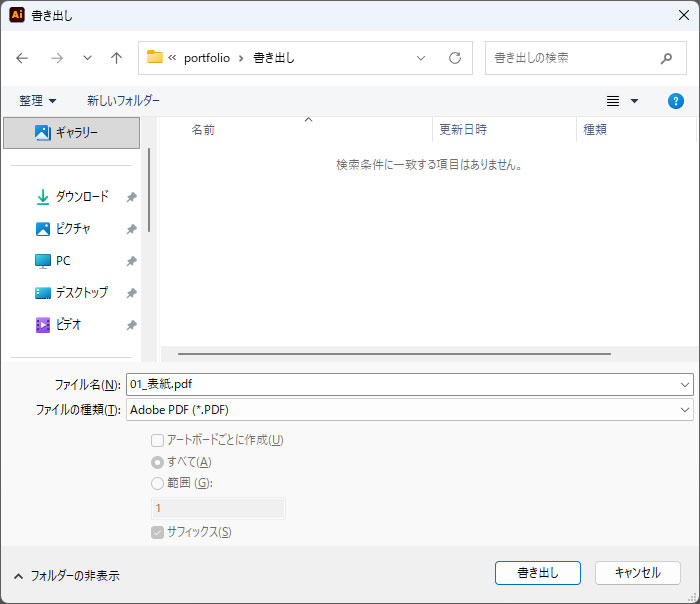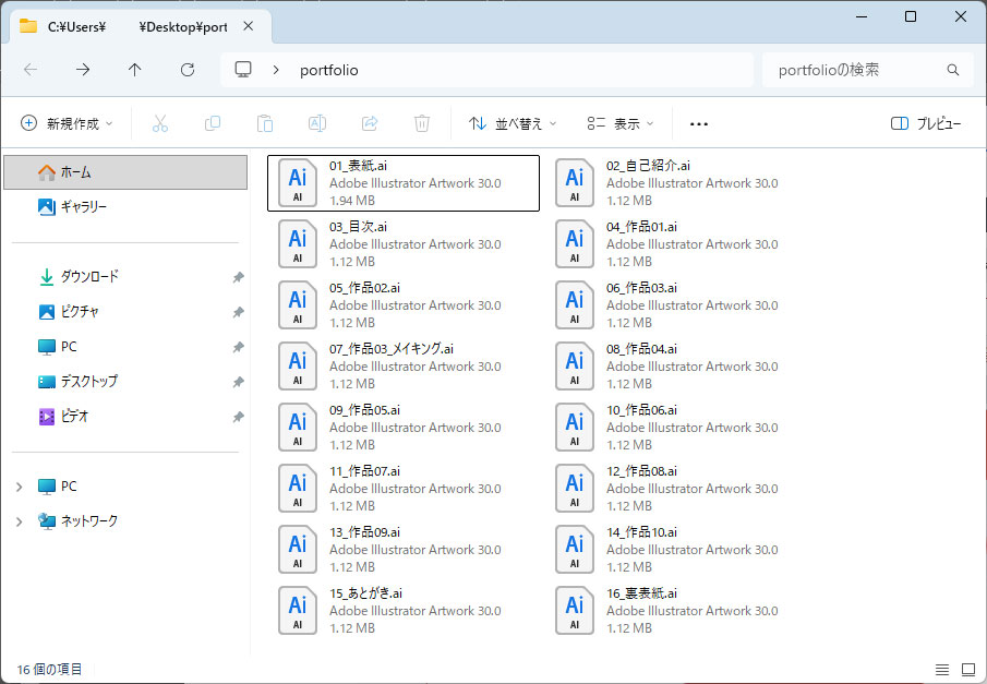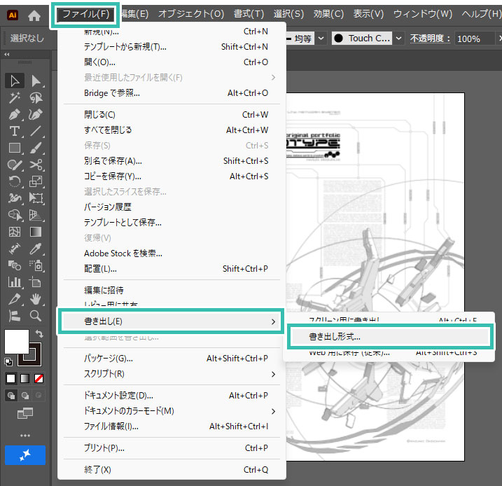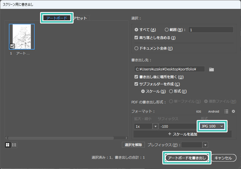 まずはIllustratorで作成したポートフォリオのデザインを書き出しましょう。