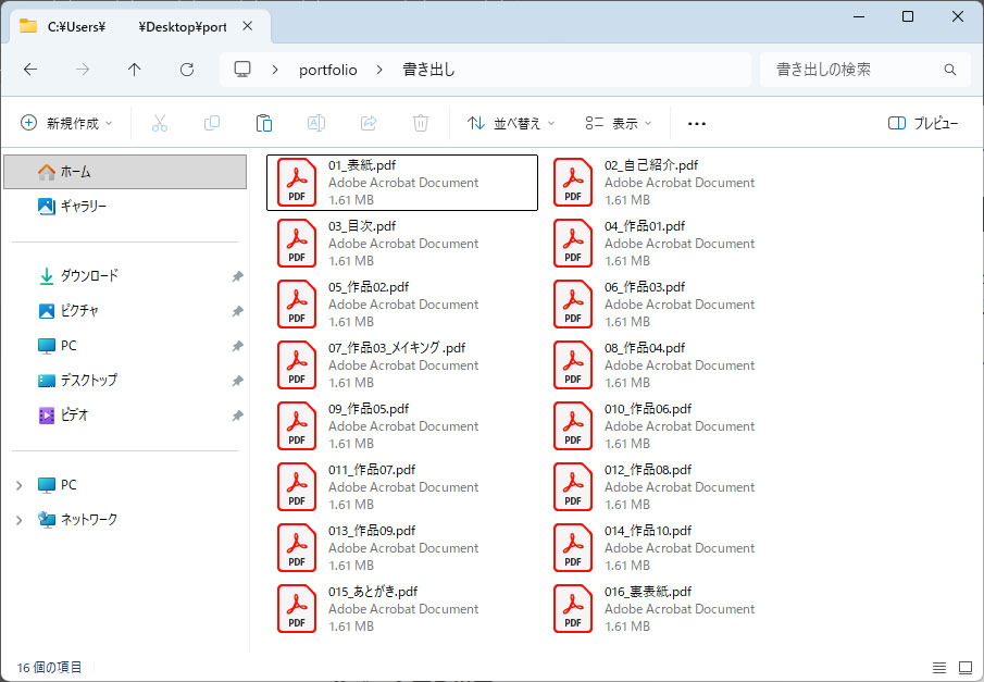以上、Illustrator(イラストレーター)でデザインしたポートフォリオのページを書き出し、Adobe Acrobatで一つのPDFに結合する方法でした。書き出しと設定方法、そして結合方法はポートフォリオ制作に必要不可欠な知識です。