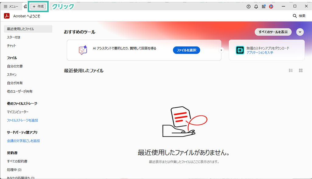 Acrobat画面上部の [ 作成 ] タブをクリックします。