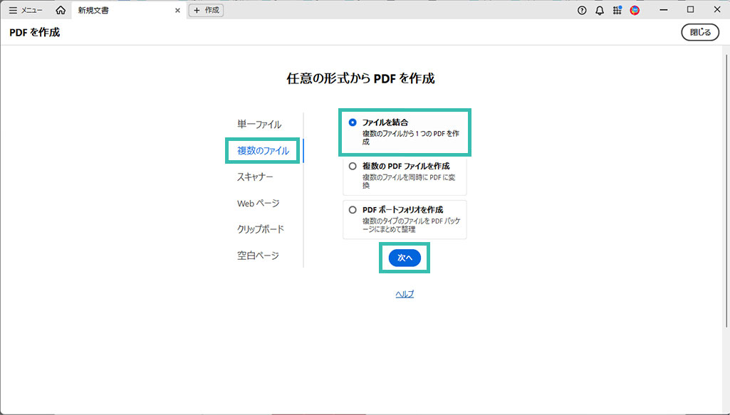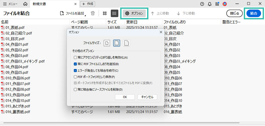 Adobe Acrobatで結合