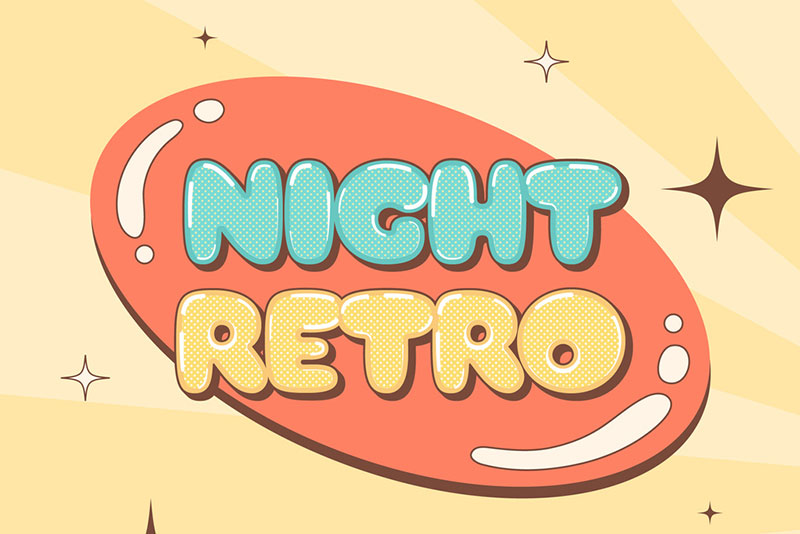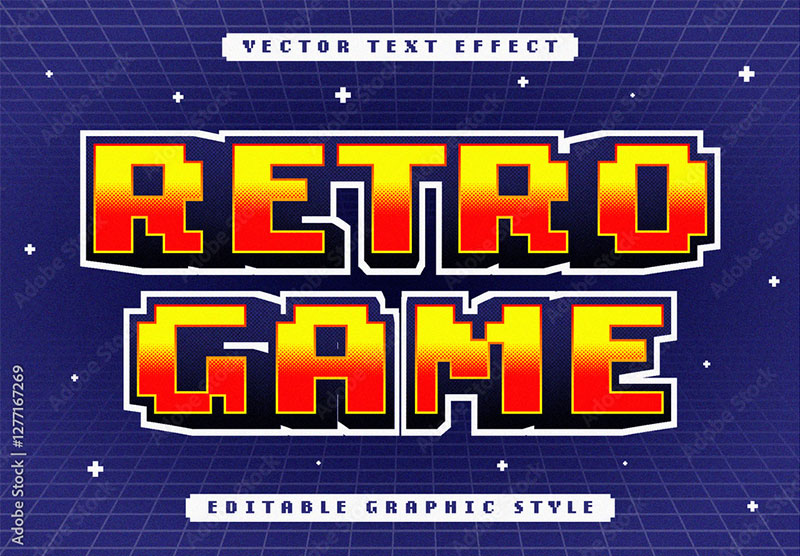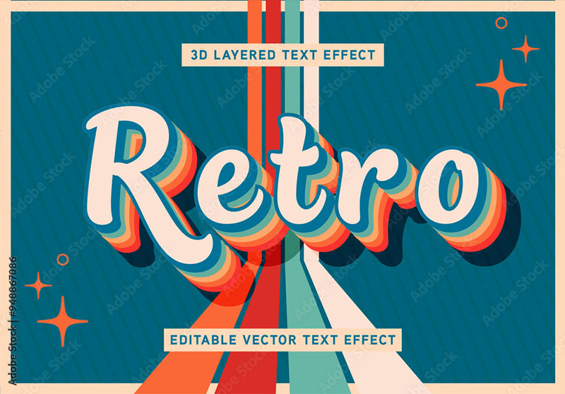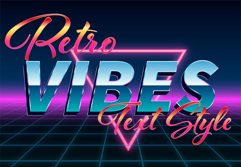 80年代に流行したレトロフューチャー系の表現ができるテキストエフェクト素材です。ベクターデータ形式なので、文字内容や色・サイズも自由に編集可能。ポスターやロゴ、サインなど、レトロ風デザインに最適です。