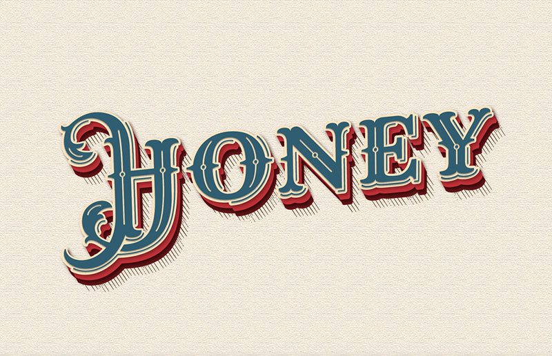 #09 Blue And Red Vintage Text Honey Font. Ornamental Retro Text Effect