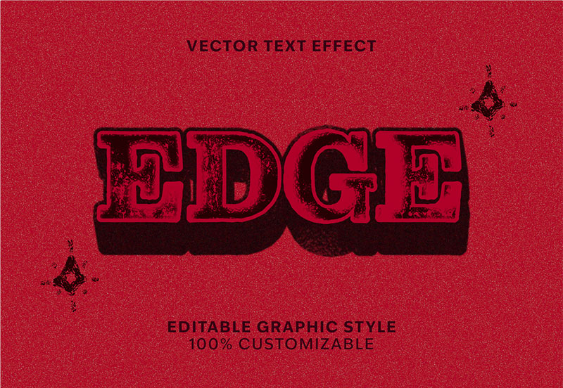 赤と黒の強いコントラストに、ガタついたエッジや擦れたグランジの質感を持つテキストエフェクトです。荒々しく力強いビジュアルで、ポスター・音楽カバー・ストリートファッション・イベント告知など、力強さや荒削りな味わいを出したいデザインに最適です。大胆なインパクトを一発で与えられ、デザインの主役として活躍します。