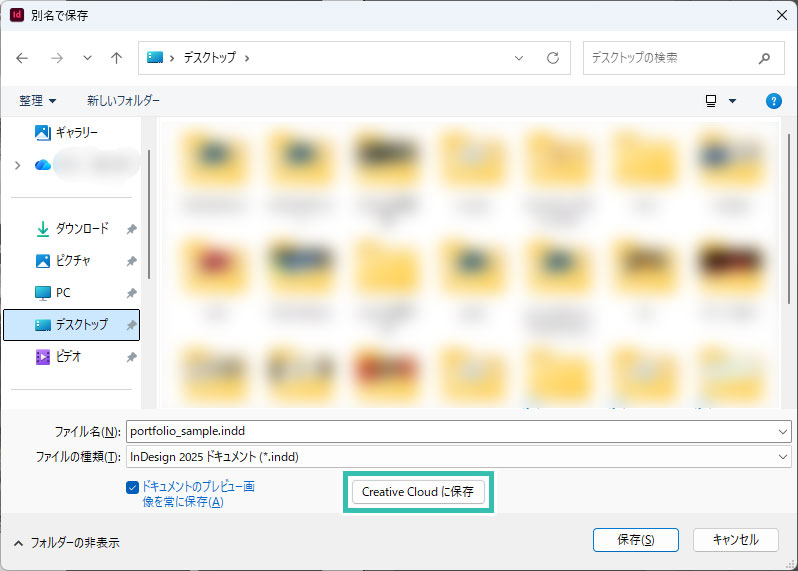 左図はローカル保存の画面です。下部にある [ CreativeCloudに保存 ] をクリックしましょう。
