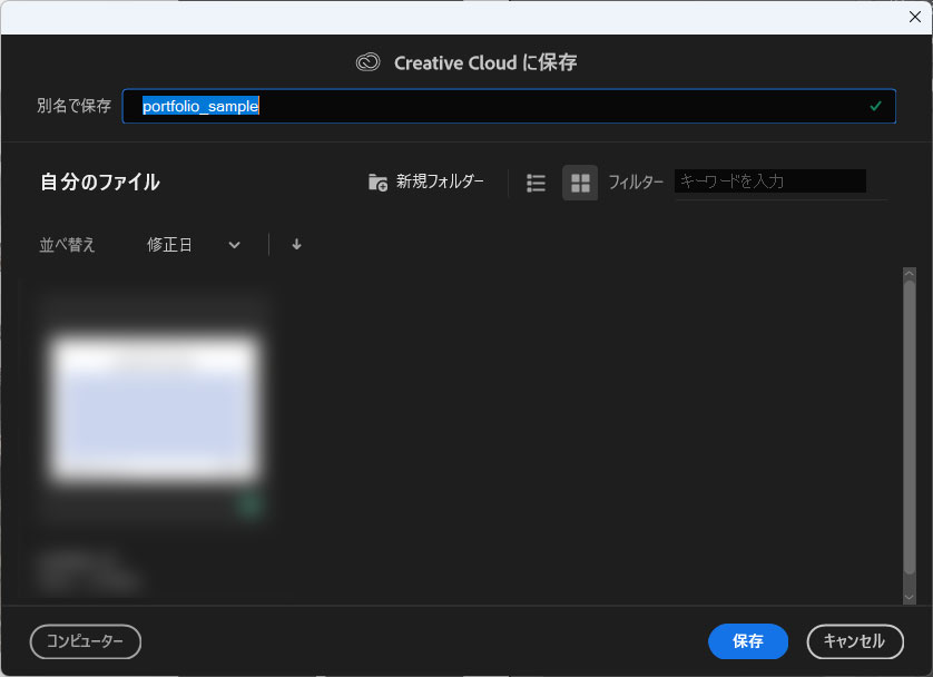 前述した通り、ファイルの保存場所はクラウド(CreativeCloud)とローカル(コンピューター)の2種類が存在します。クラウドに保存しておけば、万が一自身のPCが壊れてもデータ自体はクラウド上にあるので、Adobeアカウントさえあればいつでも編集できます。