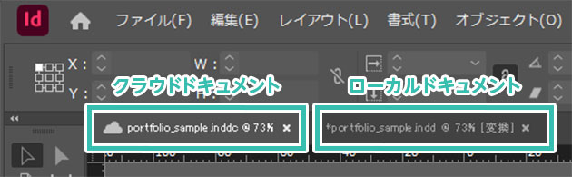 クラウドドキュメントはタブに雲アイコンが表示されます。(ローカルの場合は雲アイコン無し)