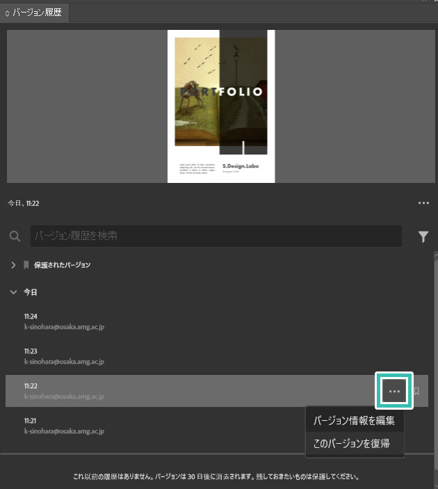 CreativeCloudにファイルを保存されている方にとってバージョン履歴はかなり便利な機能ですよ。