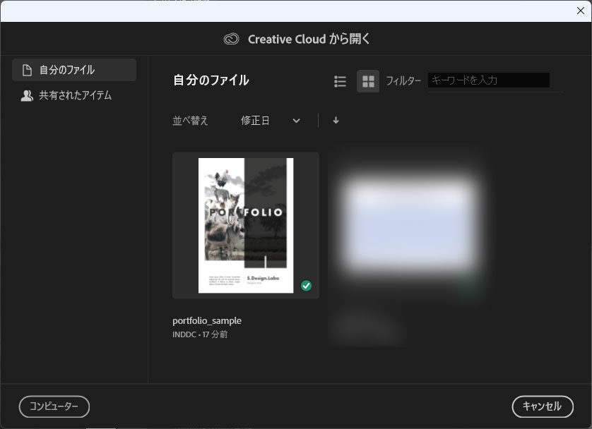 すると [ Creative Cloudから開く ] の画面が表示されます。