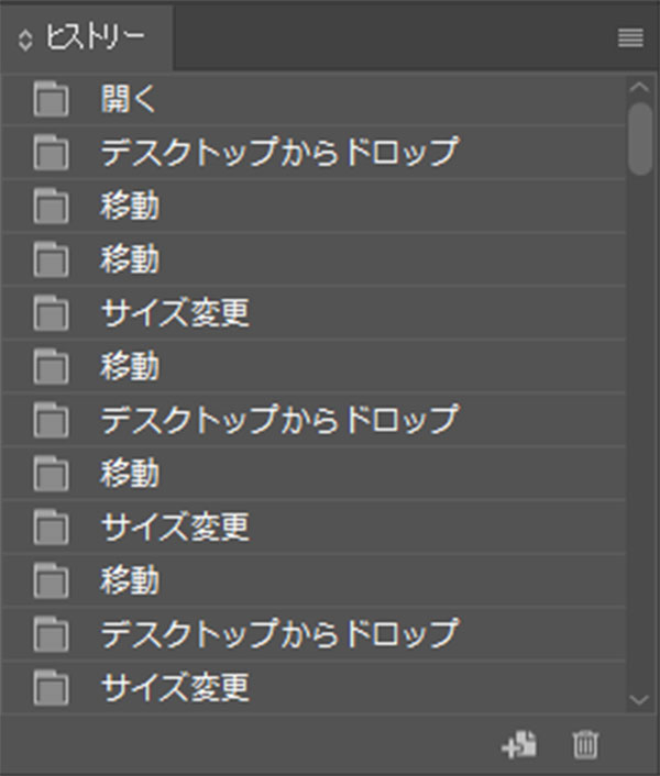 ※非表示の場合は画面上部の [ ウィンドウ ] → [ ヒストリー ] で表示可能です。