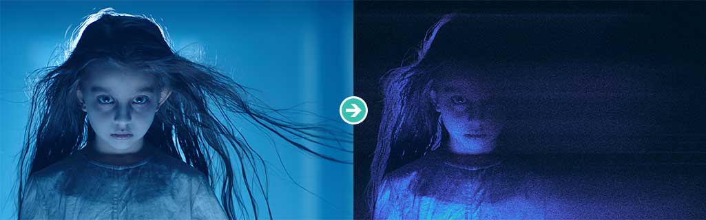 ザラっとしたノイジーな質感と被写体の一部が消えていくような表現ができるゴースト系エフェクトPSD素材です。色味やノイズの有無なども簡単に調整できますよ。