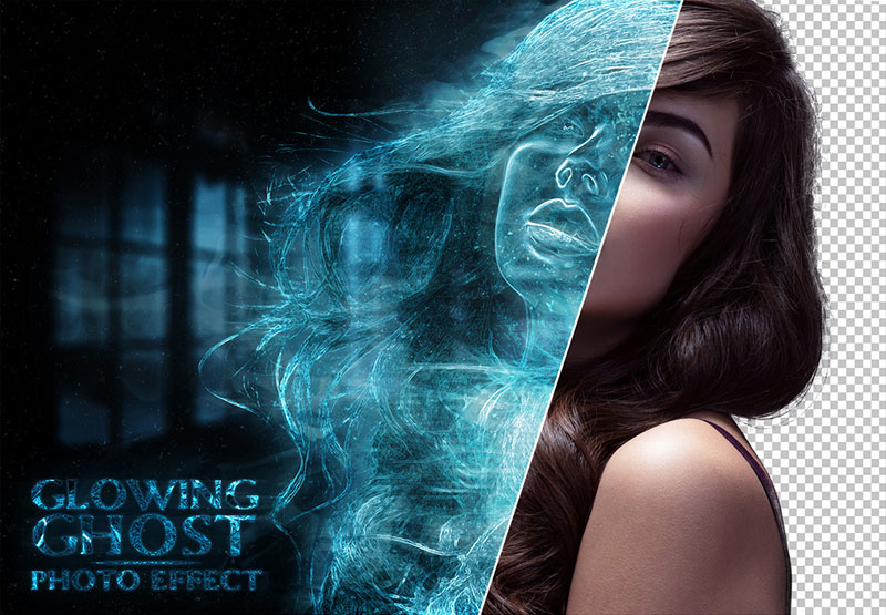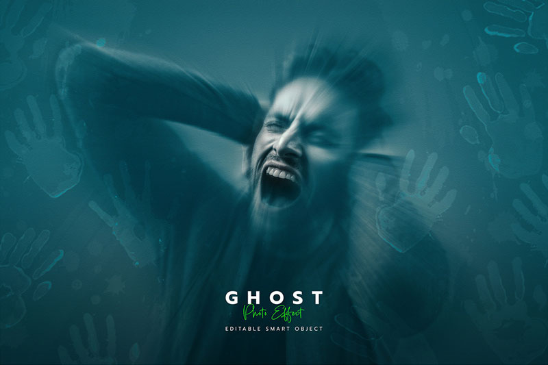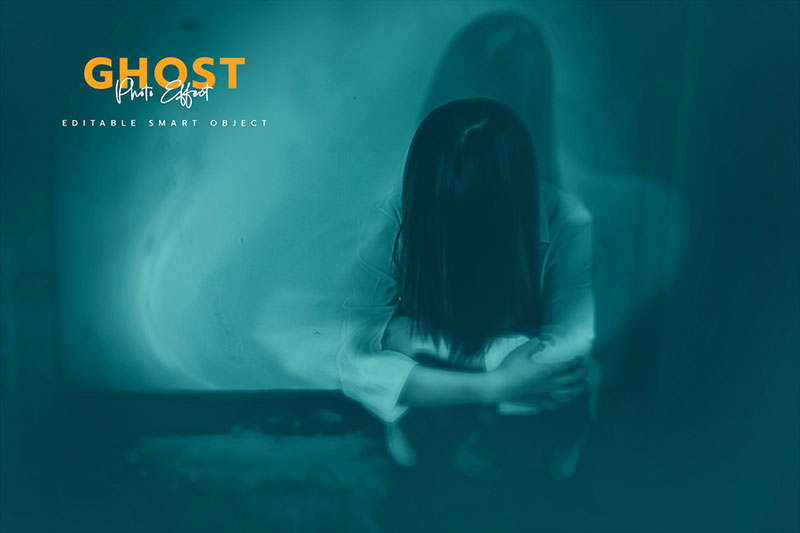 #02 Ghost Glowing Blue Photo Effect Mockup