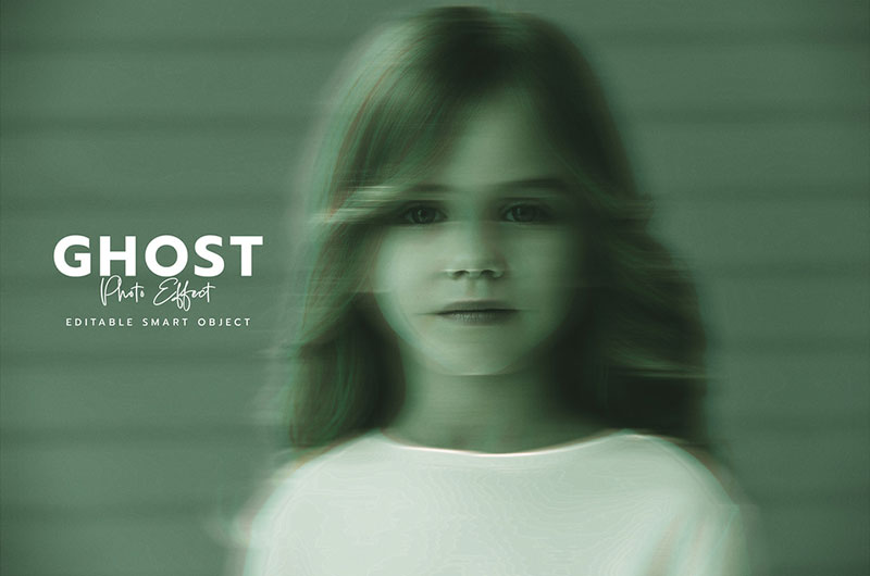 幽霊の様な不気味な残像が表現できるフォトエフェクトのPSD素材です。スマートオブジェクト内の素材を差し替えるだけでサンプルの様な表現ができますよ。
