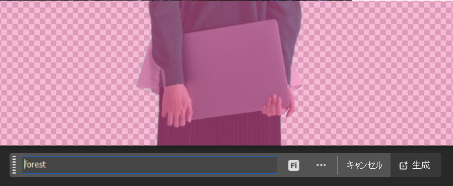 [ コンテキストタスクバー ] → [ 生成塗りつぶし ] をクリック。