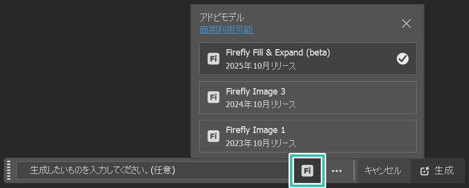 拡張生成の機能は元々Photoshop(Beta)で先行利用可能な機能でした。