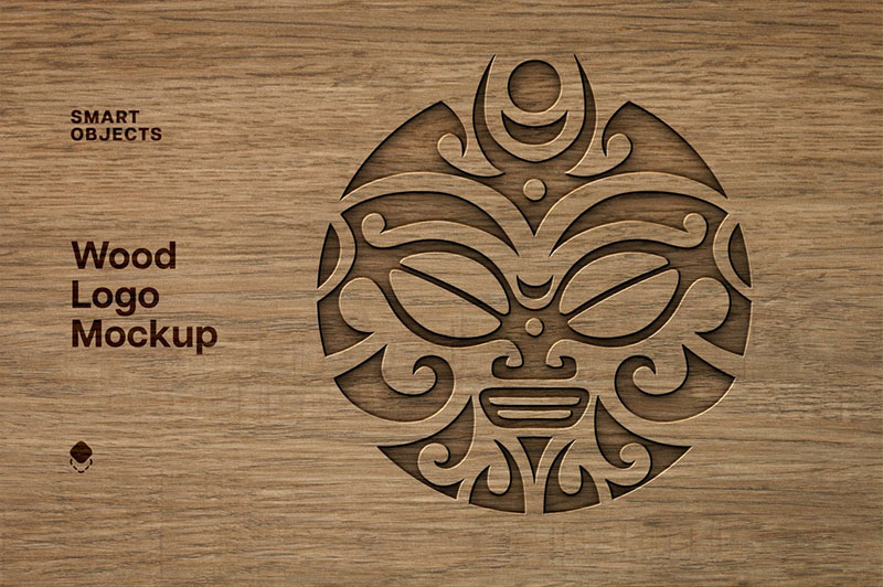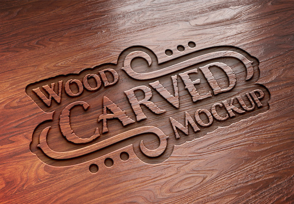 [ Carved Wood Text Effect Mockup ] を使えばたった1分でリアルな木彫りのロゴが作れます。解像度も長辺が4000pxあるので大型の印刷物にも使えます。