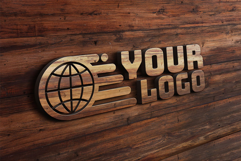 #06 3D Wood Logo Sign Mockup on Dark Wall