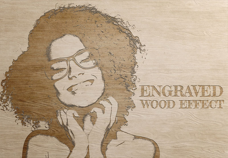 木版に人物の絵を彫り込んだような表現ができるフォトエフェクト素材です。スマートオブジェクト内の写真を差し替えるだけでサンプルの様な質感が再現できます。